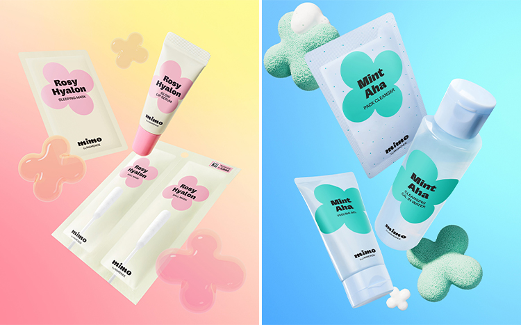 브랜드의 대표 라인이자 수분 결광에 특화된 '로지-히알론 라인'에서 3종, 새롭게 선보이는 '민트-AHA 클렌징 라인'에서 3종을 선보인다.