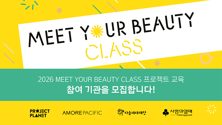 아모레퍼시픽이 다음세대재단, 사랑의열매 사회복지공동모금회와 함께 청소년의 건강한 미의식과 긍정적 자기인식 형성을 돕는 '밋유어뷰티 클래스(MEET YOUR BEAUTY CLASS)'에 참여할 교육기관을 모집한다.