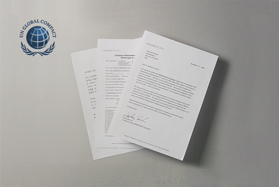 联合国全球契约(UNGC)于2000年正式启动,要求各企业在各自的影响范围内遵守、支持以及实施一套在人权、劳工标准、环境及反贪污方面的十项基本原则。爱茉莉太平洋基于CEO的坚定意志,在韩国化妆品行业首次加入UNGC,善尽企业的社会责任,实践可持续经营。